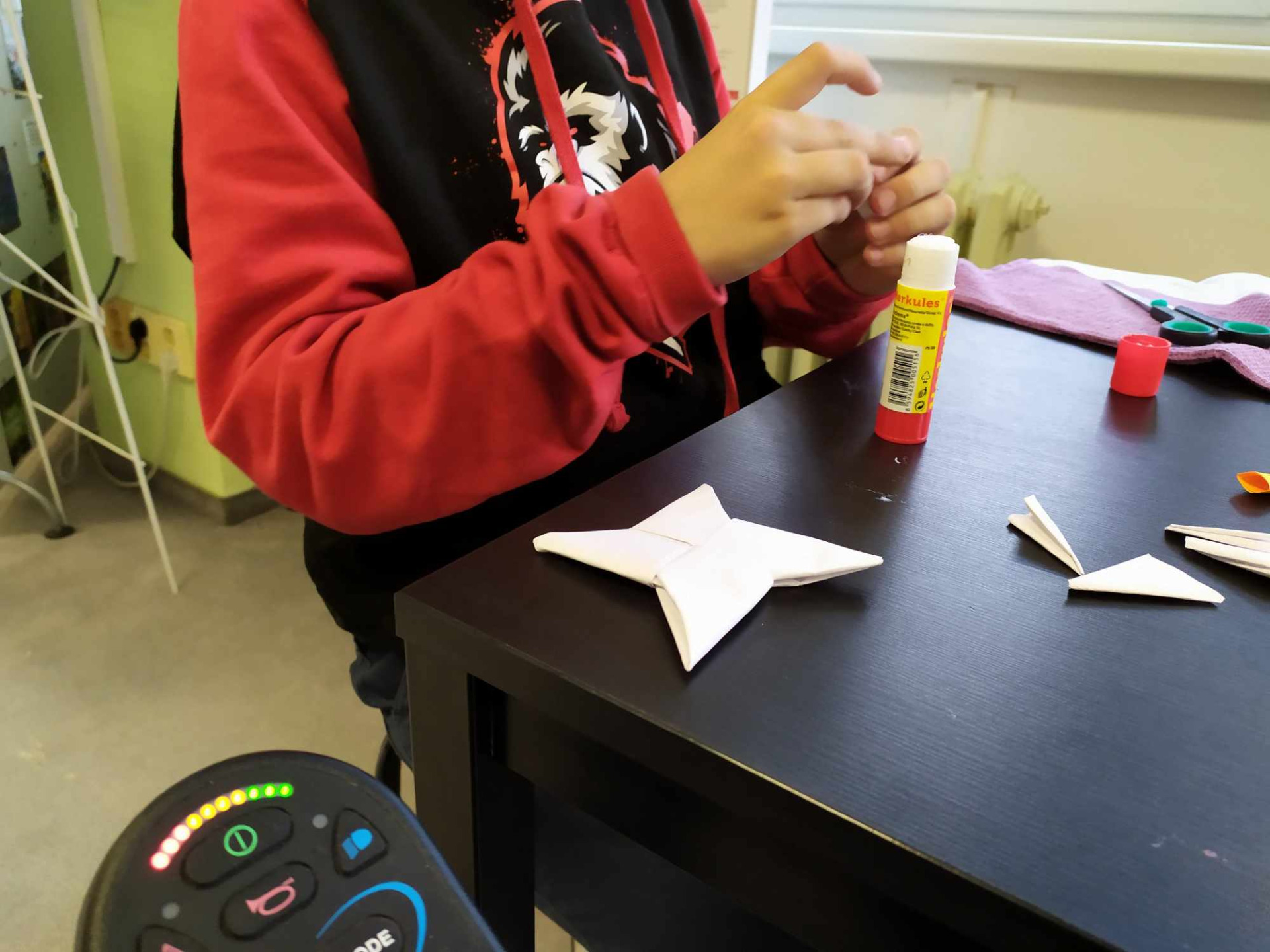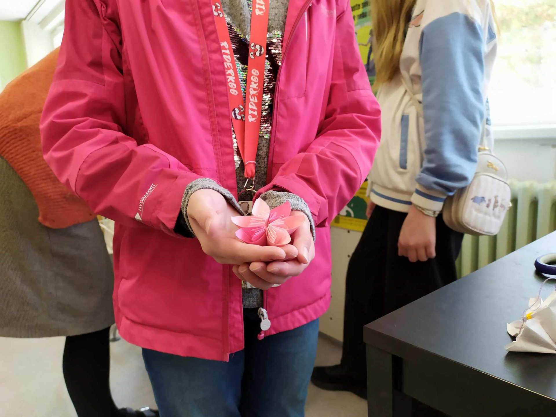 Nikdo na tvoření nepřišel. Apríl! :D V úterý prvního dubna přišly na mé tvoření tři děti. Dvě děvčata a jeden chlapec ve věku 10 - 11 let. Všichni se s nadšením zapojili do vyrábění origami květiny z bílého a barevného papíru. Navzdory komplikacím s funkčností lepidel, a uchycení okvětních lístků k sobě, to účastníci nevzdali. Brali to jako takový mini trénink vlastní trpělivosti.